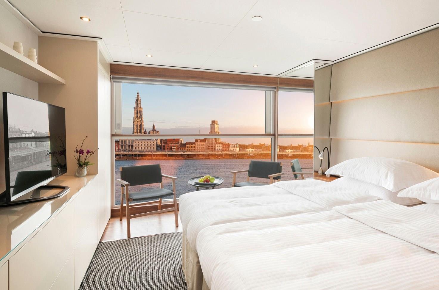 Staterooms boast a spacious layout when it comes to European small-ship river cruising. A picture window provides plenty of natural light, and your en-suite bathroom will be fully stocked with luxurious ESPA toiletries.